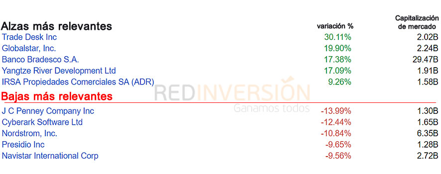 Principales tendencias del día en acciones