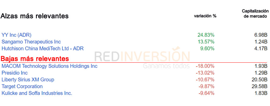 Principales tendencias del día en acciones