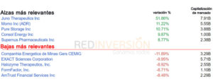 Principales tendencias del día en acciones